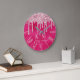 This stylish custom wall clock features a glamourous, hot pink coloured background with a foil texture design. Light pink glitter sequins are dripping across the top portion. Monogram initials are placed beneath the glitter, followed by a sample name printed in an elegant script font. You can personalise the clock to include your own custom name and monogram.