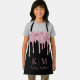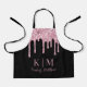 This stylish custom apron features a glamourous and elegant design on a black background. Light pink glitter sequins are dripping across the top portion. Monogram initials are placed beneath the glitter, followed by a sample name printed in an elegant script font. You can personalise the apron to include your own custom name and monogram.