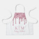 This stylish custom apron features a glamourous and elegant design on a white background. Light pink glitter sequins are dripping across the top portion. Monogram initials are placed beneath the glitter, followed by a sample name printed in an elegant script font. You can personalise the apron to include your own custom name and monogram.