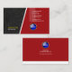 Your name is highlighted in light brown at the card's floor alongside the job title. At the right face, there is an overlapping dark red trapezium. One red, one white. Over at the top, you have the address and other contact details. This area is encased in a translucent column to highlight the information. A logo option sits directly below. Overleaf in a similar red background, there's a logo in the midsection (If you opt to load a photo, the dimensions are 1,000x1,000 pix). Below the logo are the business name, address and your business advertisement option. A large white rectangle encapsulates the card's floor. All these are customisable and you can choose to arrange how you see fit. A great card, more suited towards web applications due to its namesake.