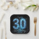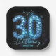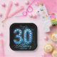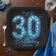 Celebrate the big 3-0 in spectacular style with these customisable blue and black 30th birthday paper plates. This eye-catching design features a large, 3D-effect number "30" created with a lustrous, jewel-like blue bubble texture that pops against a sleek black background. Accented with faux glitter sparkles, glowing bokeh lights, and elegant typography, these plates set the perfect tone for a sophisticated evening celebration or a fun "Dirty Thirty" bash.