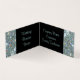 This elegant and glamourous business card is perfect for event planners with a sparkly glittery silver slipper image as a backdrop on the front and back of the outside with a black ribbon horizontally across the middle as a name plate for the text in a fancy party font and a light turquoise colour which picks up the light in the sparkles. The inside front and back of this business card has the sparkly image as a left side border and the remainder of the back is black with the text in the same colour and font as the front. Replace the details with your own information. you can customise this design even more by changing the colour and font of the text.