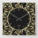 Glamours Black, Gold, And White Glitter Square Wall Clock