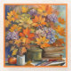 This single glass COASTER features a wonderful AI-generated Floral Bouquet in Golden Shades of Orange & Violet with a touch of Yellow. ►A border color-matched to one of the orange flowers using the Background color chart (screen left), can be changed to your color preference, or for no border, enlarge the image to cover to the Coaster's edge. ►This design may also be available as part of a set of 4 related floral coasters and also as a beautiful Apron, both in separate listings.