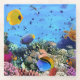 Glass coaster is shown with a photo print of pretty fish and sea life.