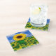 Glass coaster shown with a photo print of pretty sunflowers.
