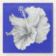 Glass coaster with a white Hibiscus on a royal blue background. Thanks to the Hungryjpeg for some of the elements in the design.