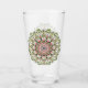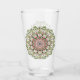 Intricate mandala pattern featuring floral and leaf motifs in pastel hues of green and pink. The design showcases a symmetrical arrangement with layers of petal-like shapes radiating from the centre. Delicate scroll-like details form the outer circle, adding complexity. The use of soft colours and natural elements evokes a sense of harmony and balance, reminiscent of textile designs.