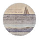 USE FOR DISPLAY OR FOOD PREP. THIS SMALL ROUND GLASS CUTTING BOARD FEATURES A LONE SAILBOAT OUT ON THE SEA. SOME SMALL WAVES CAN BE SEEN. MUTED COLORS. QUOTE ABOUT LOVE OF THE SEA (CUSTOMIZABLE) GREAT GIFT FOR THE SAILING ENTHUSIASTS IN YOUR FAMILY OR FRIENDSHIP NETWORK.