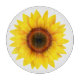 Glass cutting board is shown in a round style in a lovely sunflower print.