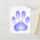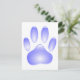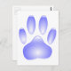 A shiny, transparent dog paw print made of glass. Custom postcards. All digital image that reproduces the texture of glass.