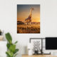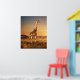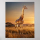 A majestic glass giraffe stands tall across the open savannah, crafted from transparent crystal with subtle amber tinting, polished contours, and graceful internal reflections. Long elegant legs, detailed ossicones, and a calm expression create a refined modern sculpture feel. Golden grasses, acacia trees, distant hills, and warm sunrise light surround the scene with serene African beauty. Perfect for safari-themed interiors, nurseries, contemporary homes, wildlife lovers, and statement walls seeking sophisticated animal art.