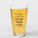 Funny and quirky slogan glass with text "My glass is half full. Who's been drinking my beer?!" quoted paranoid optimist. Custom with your drink of choice.