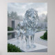 A regal lion stands like a modern masterpiece, its body crafted from transparent glass with polished contours, refracted light, and elegant internal reflections. Thick sculptural mane details and crystal-clear facial features create a striking balance of power and sophistication. Set within a serene sculpture garden of pale stone paths, reflecting pools, minimalist landscaping, and soft dawn mist, this artwork feels upscale and timeless. Perfect for contemporary interiors, offices, luxury homes, neutral décor styles, and collectors who appreciate modern animal sculpture aesthetics.