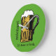 Purchased this online and it got delivered quickly. It was a present for my Dads 70th birthday. He loves clocks so decided to get him one with something written on it. Battery went in and it started working straight away. Dads had no issues with it. Printing was just how it came up online.