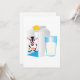 A glass of milk next to a milk carton with an image of a cow on it. This design looks really effective on this Invitations