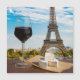 Glass of wine with brie cheese on Eiffel tower and Paris skyline background. Sunny view of glass of red wine overlooking the Eiffel Tower in Paris, France
