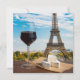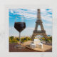 Glass of wine with brie cheese on Eiffel tower