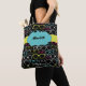 This personalised tote bag features an all over pattern of cool looking glasses frames or spectacles in lime green, magenta, bright blue and white against a black background. Use the fill in the blank field to personalise this tote bag with your name. This bag makes a special personalised gift and coordinates with other items in the Spectacular Spectacles collection from Asterisk Designs.