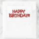 Glassy Red Happy Birthday Text Image Rectangular Sticker