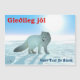 White on white. A digital painting of an Arctic Fox, Vulpes lagopus, on the polar ice. The sun hangs low in the bright blue arctic sky. Do not stare at the sun as it can harm your eyes. Icelandic text reading "Gleðileg jól" (Merry Christmas) appears in red. Add your own additional text.