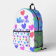 The artwork features an assortment of pastel-coloured hearts gliding smoothly over the design space along with a customisable typography field, which currently reads "Backpack" for name or other personalisation.