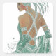Glimpse of Elegance: Green Backless Dress Design Square Sticker