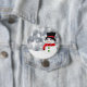 Cute little snowman glistening in the sunshine. Red Scarf, black top hat and green buttons.