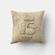 Celebrate your Quinceanera event in style with this throw pillow featuring a unique decorative font, a trendy retro style and an eye-catching background of glittering gold. The striking 'Cara Quince' or 'Cara 15' text (dear or precious fifteen) is a parallel to the American celebration for 'Sweet 16' and adds a unique modern alternative to the standard 'Quinceanera' title normally used for this special event. Use the provided template to add a celebrants name and birthdate. Search ID701 to see other products and color options for this design.