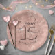 Celebrate your Quinceanera event in style with this paper plate featuring a unique decorative font, a trendy retro style and an eye-catching background of glittering rose gold. The striking 'Cara Quince' or 'Cara 15' text (dear or precious fifteen) is a parallel to the English celebration for 'Sweet 16' and adds a unique modern alternative to the standard 'Quinceanera' title normally used for this special event. Use the provided template to add a celebrants name and birthdate. Search ID701 to see other products and colour options for this design.
