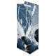 This wine gift bag has ornaments with an elegant sparkle and look of glitter. In various shades of blue, this bag features a design that says, 'Happy Holidays'.