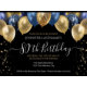 Elegant faux silver and gold glitter balloons on the top border. All text is adjustable and easy to change for your own party needs. Great elegant save the date birthday party template design. any year, age can be changed