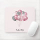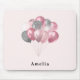 Mouse pad with an illustration of a bunch of balloons in pink and silver grey colours.