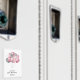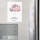 Magnet with an illustration of a bunch of balloons in pink and silver grey colours.