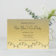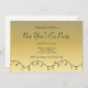Festive New Year's Eve Party 2026 invitation, with a typography design on a Glitter Gold background. With customizable black lettering, you can add your own family name. A white and gold string lights image accents the front of the card. An elegant way to celebrate 2026 with friends and loved ones.