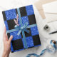 Glitter blue and black checkers pattern (faux not real glitter). Chequered gift ideas.