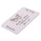 This beautiful and elegant design, called Glitter Butterfly on Lavender Wedding, has a pretty lilac background. There is a thin gold border and a pretty gold floral graphic behind the butterfly. The butterfly actually frames more butterfly art with lots of small butterflies in soft colours and would make a perfect invitation set for your spring wedding or event. Please email me for matching designs and products or with custom requests at noteableexpressions@gmail.com. This set has invitations, save the date cards, response cards, thank you cards, table number tent cards, envelope seals, wine labels, binders, return address labels and many more day-of wedding stationery pieces, favours, and gifts available. Use the envelope seal stickers for any of your DIY gifts - these are available in both large and small sizes! All elements are printed on our high quality products, they do not include any real gold, jewels, embossing, or other textile elements. All designs are copyright Noteable Expressions, Inc. All rights reserved.