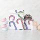 A pattern of red, green, pink and blue candy canes, with a digital glitter pattern.