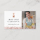 Modern and professional photo cleaning services business cards featuring a minimal design and layout. Customise with your business portrait along with your business name and website. A simple faux rose gold spray bottle logo is added over the business name, along with the faux rose gold glitter design. The reverse side features a QR code for you to replace, along with a name, job title, contact info, and social handle. All illustrations are hand-drawn original artwork by Moodthology Papery. Perfect business card for house cleaning business, maid services etc.