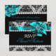 Glitter Damask & Teal Jewel Bow Sweet 16 RSVP Card