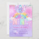 Celebrate a magical 9th birthday with this sparkling rainbow birthday invitation!