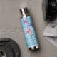 The bottle looks even better in real life. The ice cubes I put in lasts all day! I have my bottle with me all the time. It's summer and having something cold to drink feels amazing. With this bottle I always have something super cold. I have only tried the hot drink once and it lasted a long time as well. The color blue is a navy blue and the white printed on it is vibrant. It printed perfectly. I love my personalized smile water bottle.