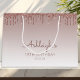 This chic 18th birthday party gift bag features a sparkly rose gold faux glitter drip border and rose gold ombre background. Personalise it with her name in handwriting script, along with her birthday and date below.