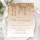 This trendy 50th wedding anniversary party invitation postcard features a sparkly gold faux glitter drip border and ombre background. The words "50th Anniversary" and the names of the couple appear in whimsical gold-coloured script, with the rest of the customisable text in gold-coloured sans serif font.