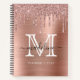Glitter Drips Brushed Metal Rose Gold Monogram Notebook