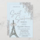 Glitter Drips Eiffel Tower Bow Blue Sweet 16 Invitation
