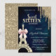 Glitter Drips,Eiffel Tower Bow Navy Blue Sweet 16 Invitation