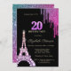 Glitter Drips,Eiffel Tower Diamonds 20th Birthday Invitation