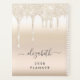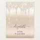 Personalised elegant and chic sparkly planner featuring gold faux glitter dripping from the top against a champagne gold background. You can add your first name in a stylish trendy soft grey script with swashes.