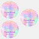 A trendy rainbow coloured, holographic background with unicorn and rainbow pastel colours in pink, purple, rose gold, mint green. Decorated with faux glitter drips in rose gold, pink and purple.  A bookplate, label for textbooks, school books or marking your kids belongings, lunchbox, school supplies.  Personalise and add a name and a phone number, written with a girly modern hand lettered style script.   Purple coloured letters.